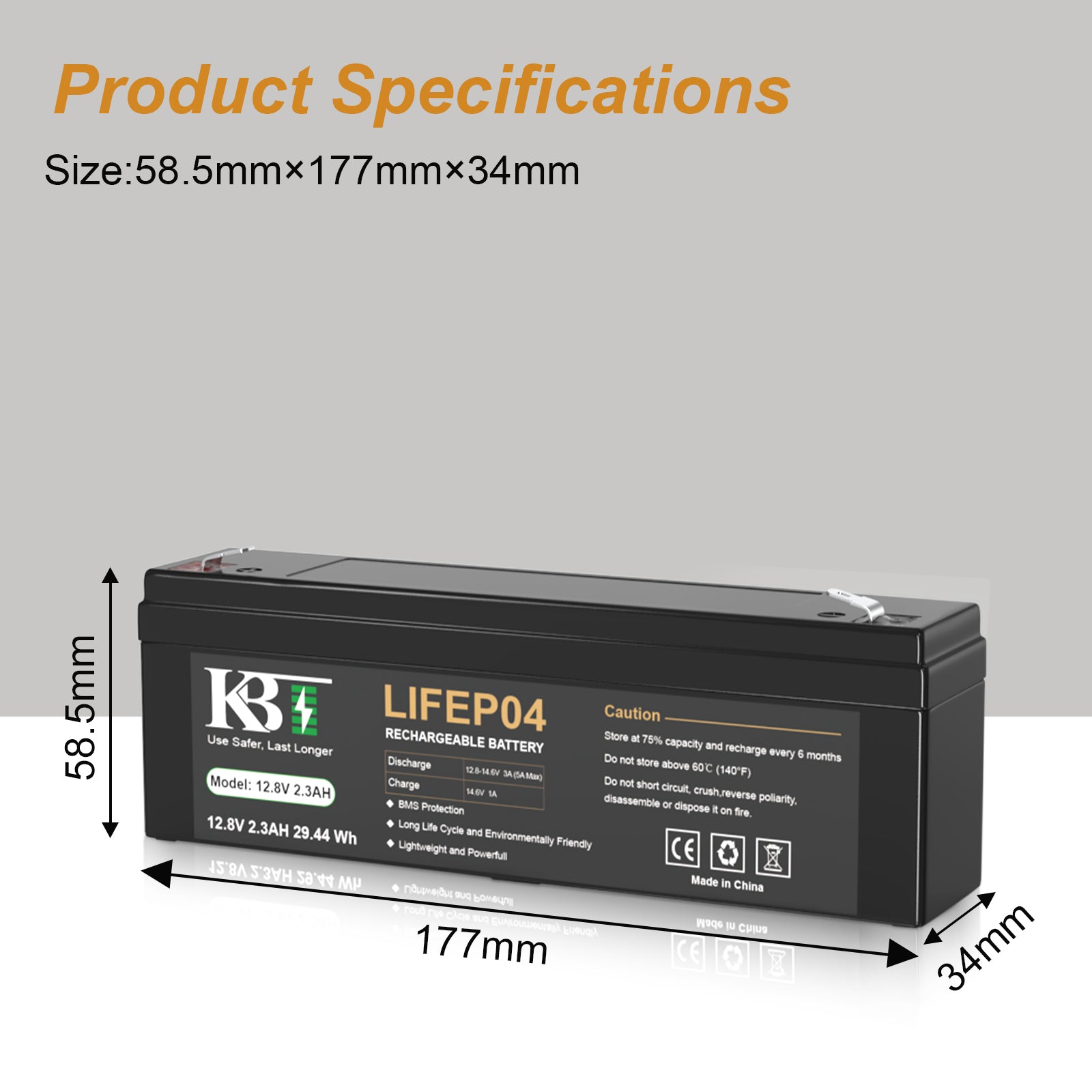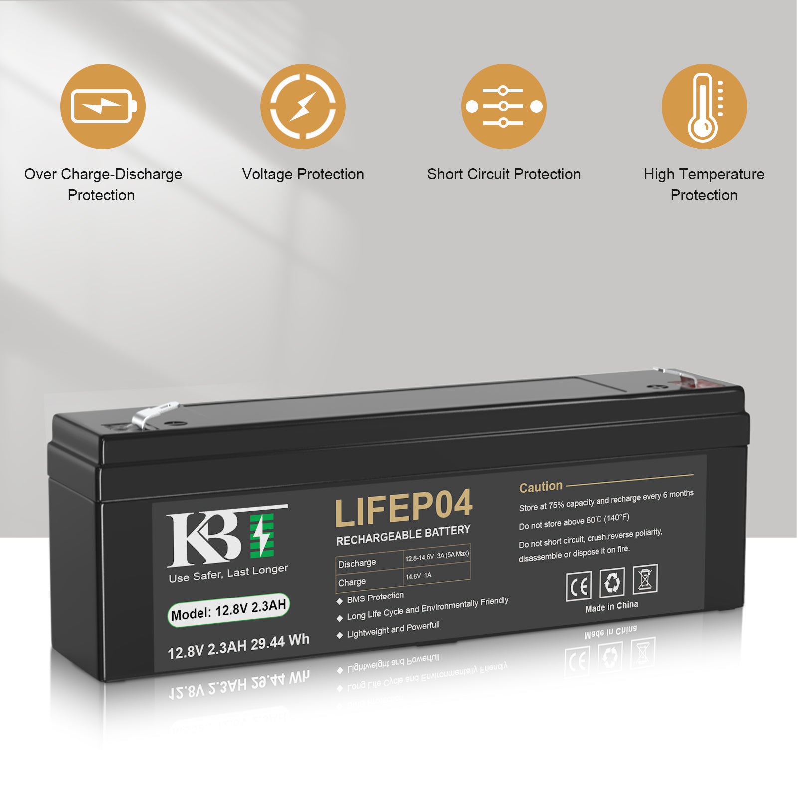 KBT 12V 2.3Ah Rechargeable Battery, Build-in BMS Protection, LiFePO4 Replacement for Lead Acid Battery