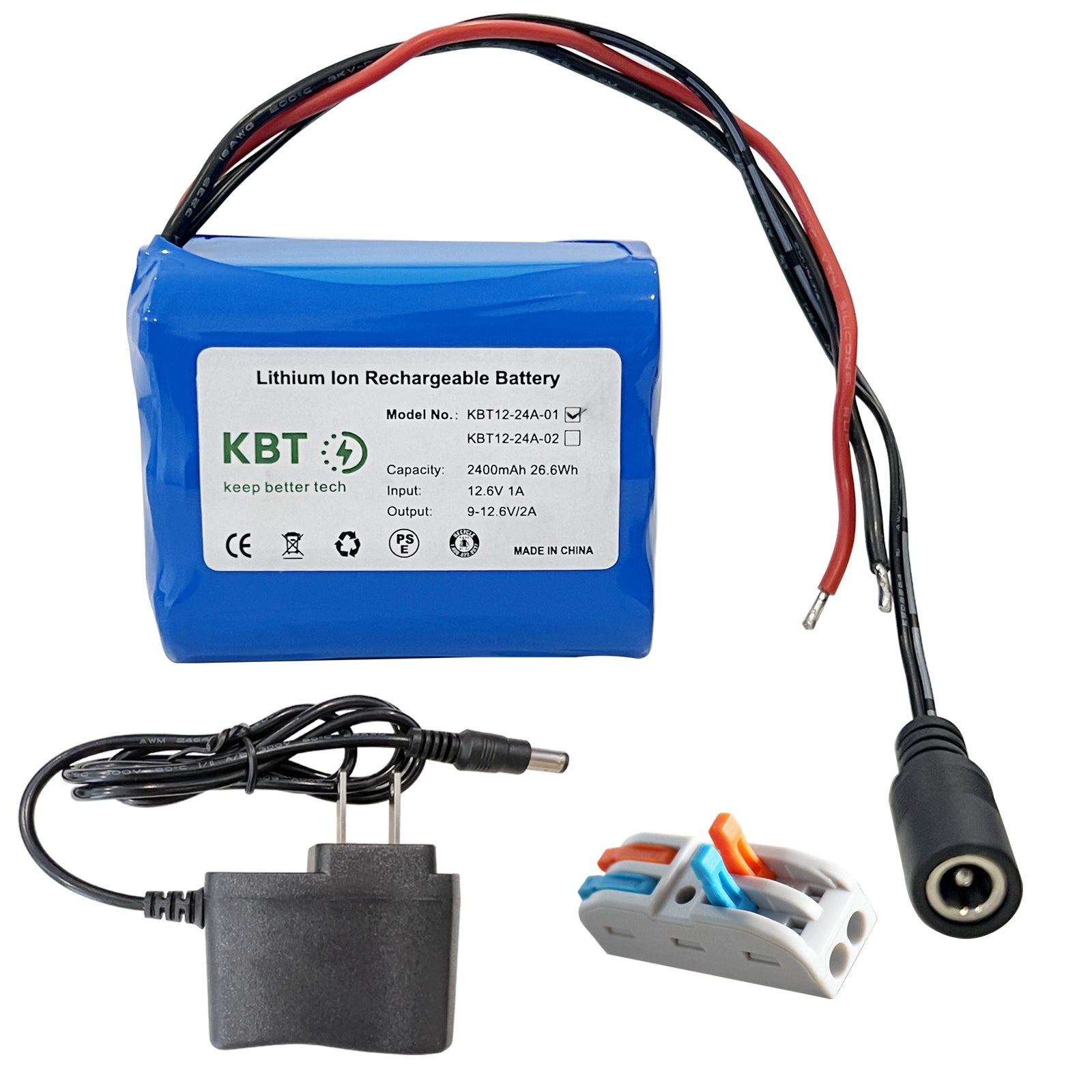 KBT 12V 2400mAh Rechargeable Li-ion Battery, Bare Leads Wire Replacement Battery Pack with Charger Compatible with 12V Devices RC Car, Boat, Robot, DIY, LED Light Strip, CCTV Camera