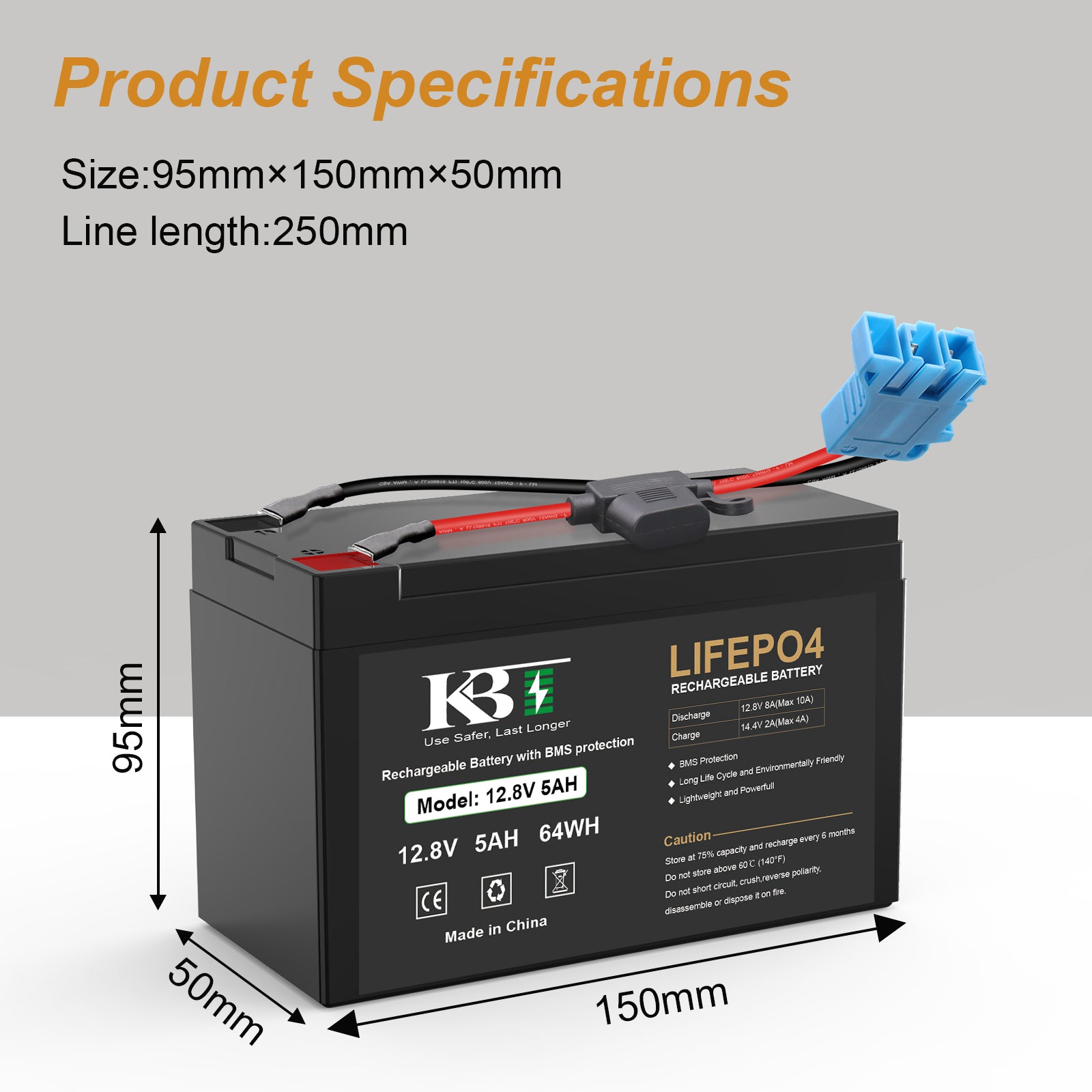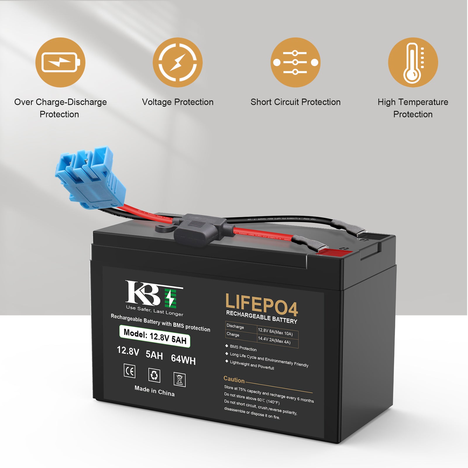 KBT 12V 5Ah Rechargeable LiFePO4 Lithium Battery for Peg Perego Tractor John Deere Gator XUV Polaris RZR 900 Polaris Slingshot Gaucho Rock'in Kids Ride On Car Toys 12Volt Battery Replacement