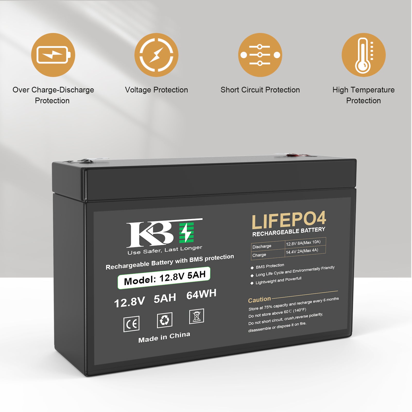 KBT 12V 5Ah Rechargeable LiFePO4 Lithium Replacement UPS Battery for APC Back-UPS 550 BE550G BB CPS5.5-12 CyberPower 12V CP550SLG 6FM7 SLA Battery for Ride On Toys, HAM Radio, Home Alarm System