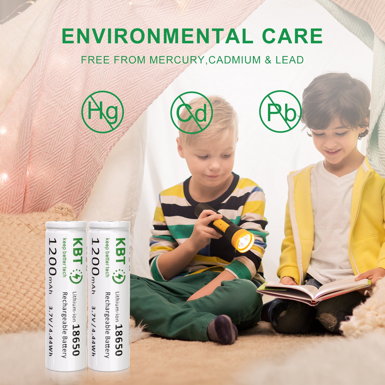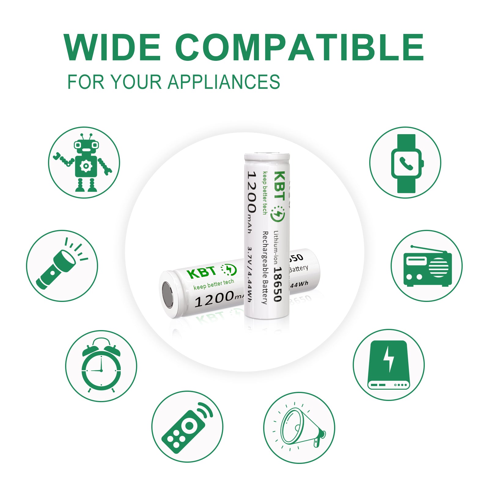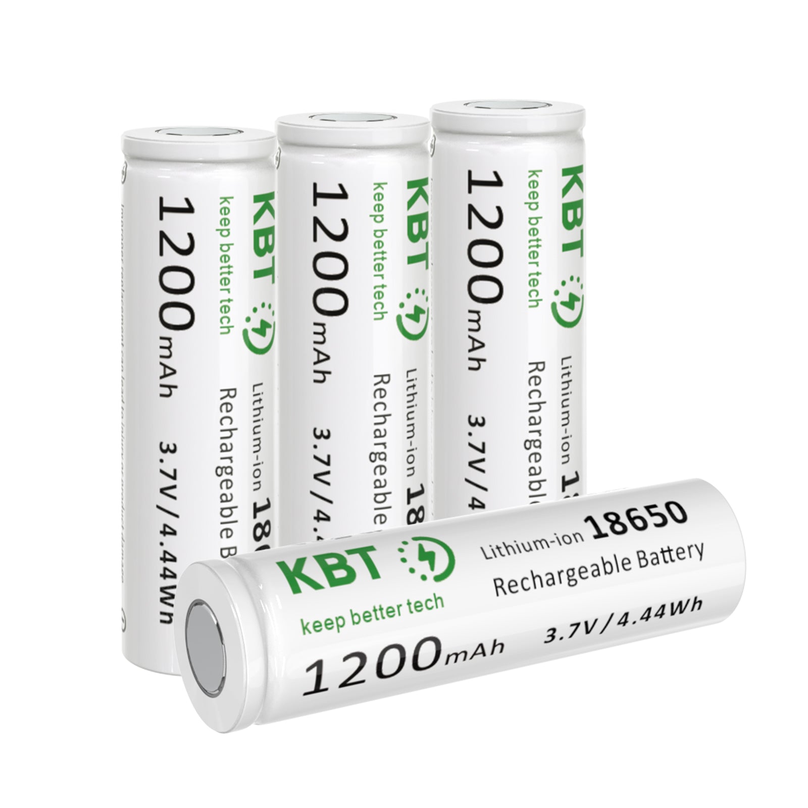 KBT 3.7V 1200mAh 18650 Rechargeable Battery, Flat Top - 4pack