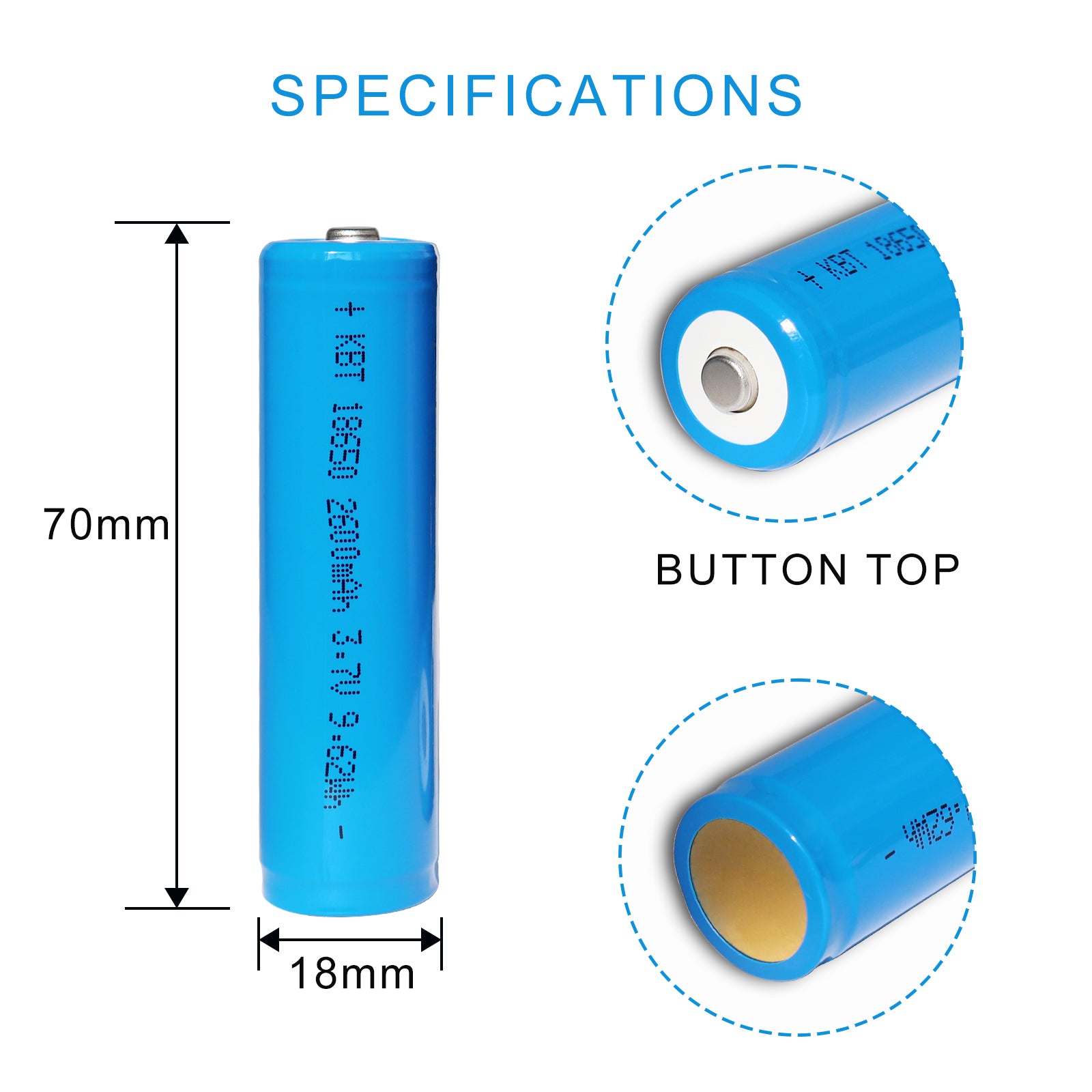 | Size | 18650 (Diameter 18mm, Length 70mm) |